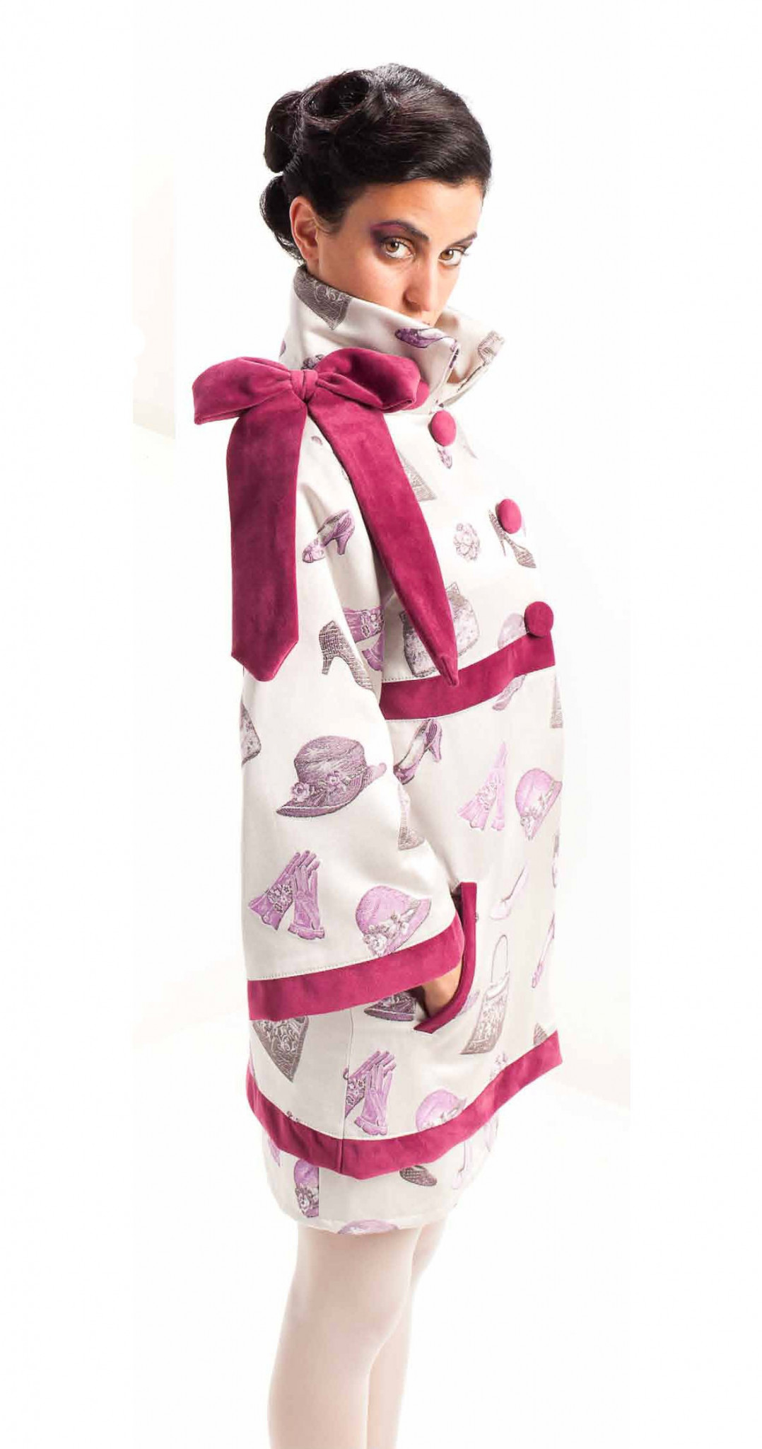 I capi Vitussi sono interamente realizzati con materiali di altro pregio, utilizzati abitualmente per l’arredamento d’interni di lusso e provenienti da ogni angolo d’Europa, spesso da grandi Maison di moda. Il tessuto è protagonista e insieme ai suoi colori accesi, ai suoi motivi stravaganti, ai suoi tagli eleganti e maestosi, viene declinato in cappotti, giacche, mantelle, corsetti e poi accessori, sciarpe, cappelli e borse del brand, per un look raffinato.