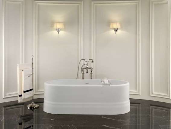 Facciamo qualche esempio: la vasca Diva, realizzata in monoblocco da una miscela di quarzo e resina. Da come si può facilmente comprendere, si caratterizza per l’estrema durezza del materiale e per l’ottima resistenza ad urti e segni. C’è poi il mobile Domino che ricorda i piccoli mobili porta liquori degli anni Quaranta. Dotato di un ampio cassetto portaoggetti, Domino può essere abbinato al lavabo Westminster in porcellana bianca o presentarsi con pregiato top e alzata in marmo nero Marquinha con vaschetta in ceramica nera.