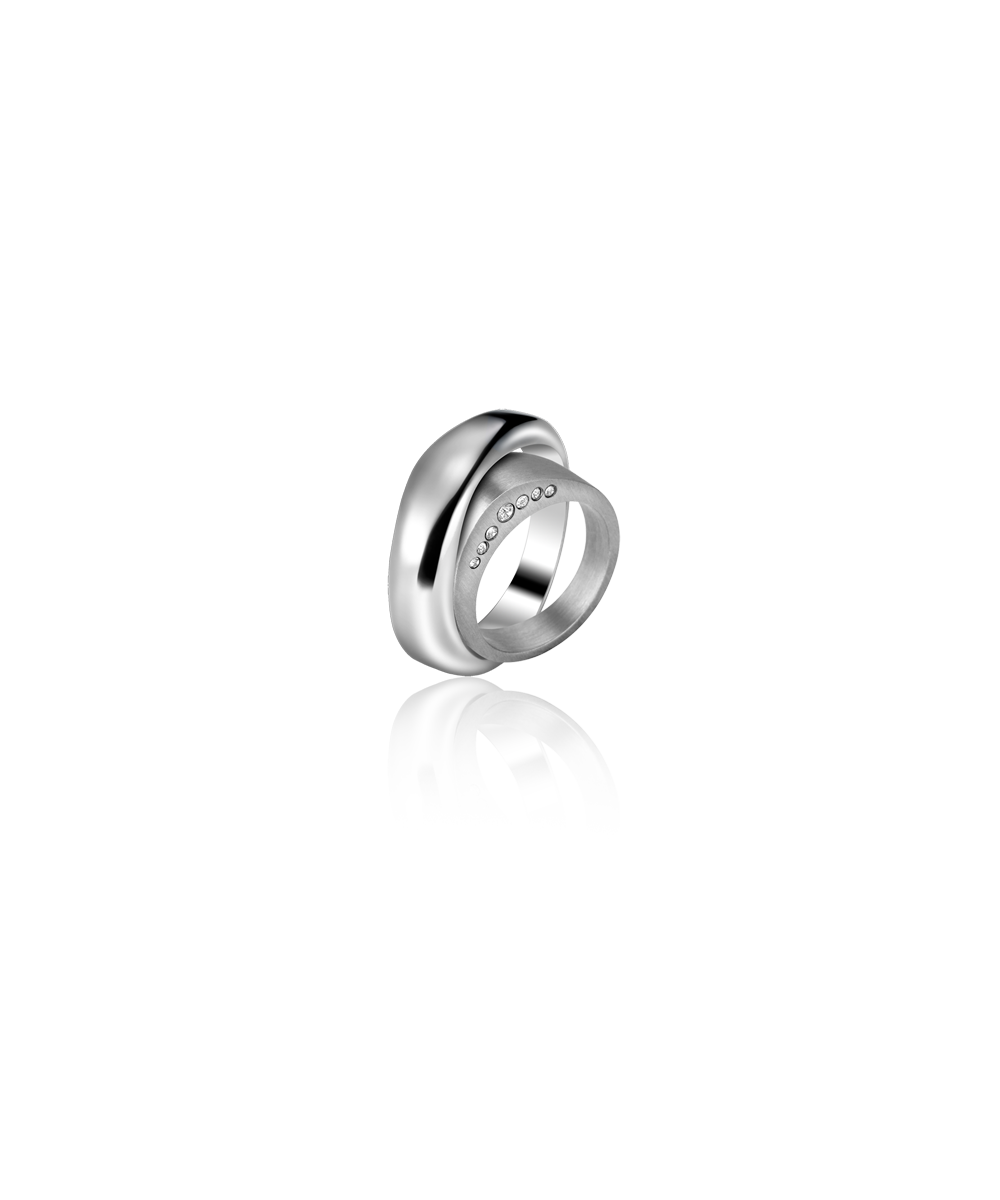 Ad arricchire la collezione ci sono gli orecchini pendenti in acciaio satinato e anelli in acciaio lucido e acciaio satinato con cristalli.