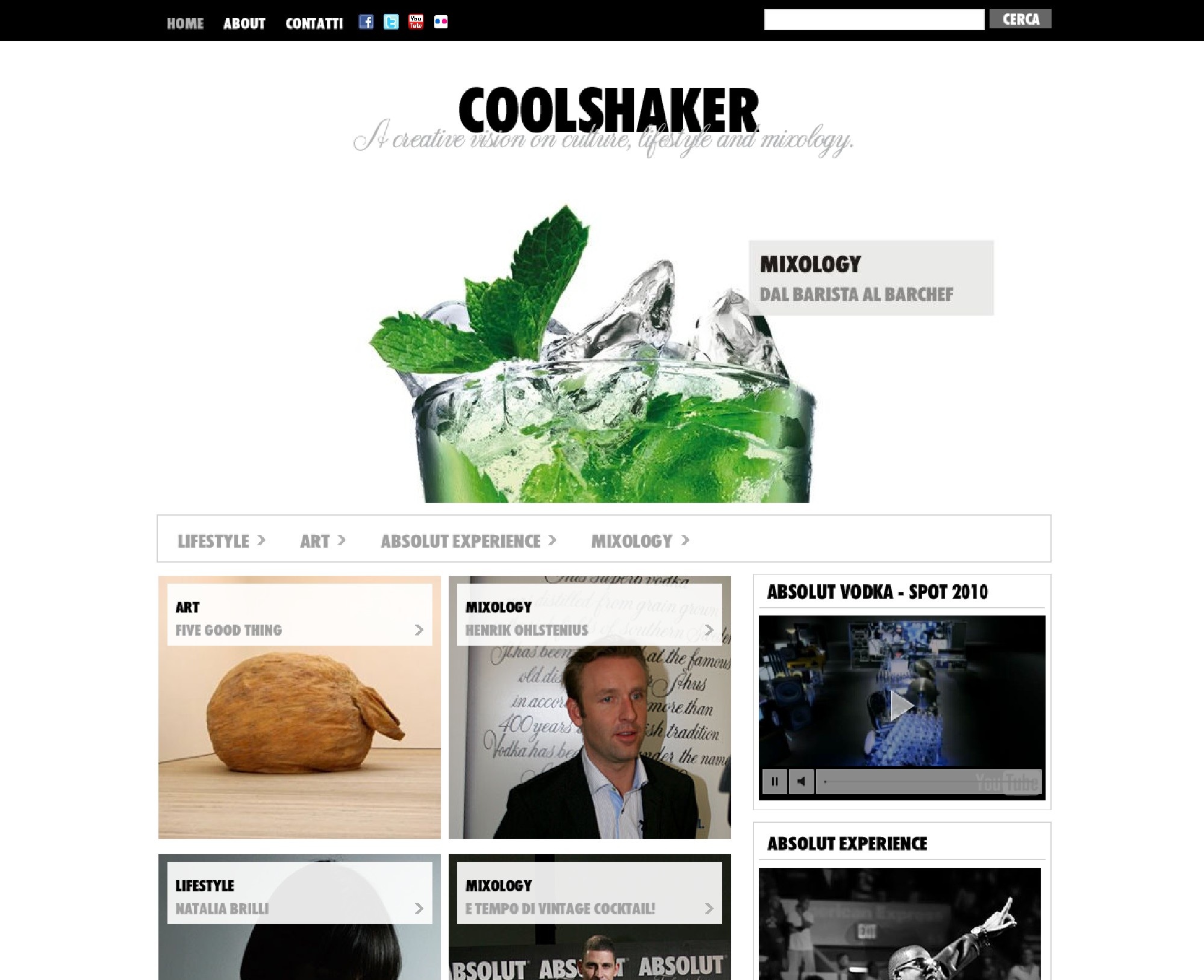 Ecco la miscela perfetta di Coolshaker – a creative vision on culture, lifestyle and mixology, una piattaforma web on line dal 17 gennaio 2011 e firmata Absolut Vodka ricca di notizie su tutto ciò che fa tendenza. Moda ma non solo.