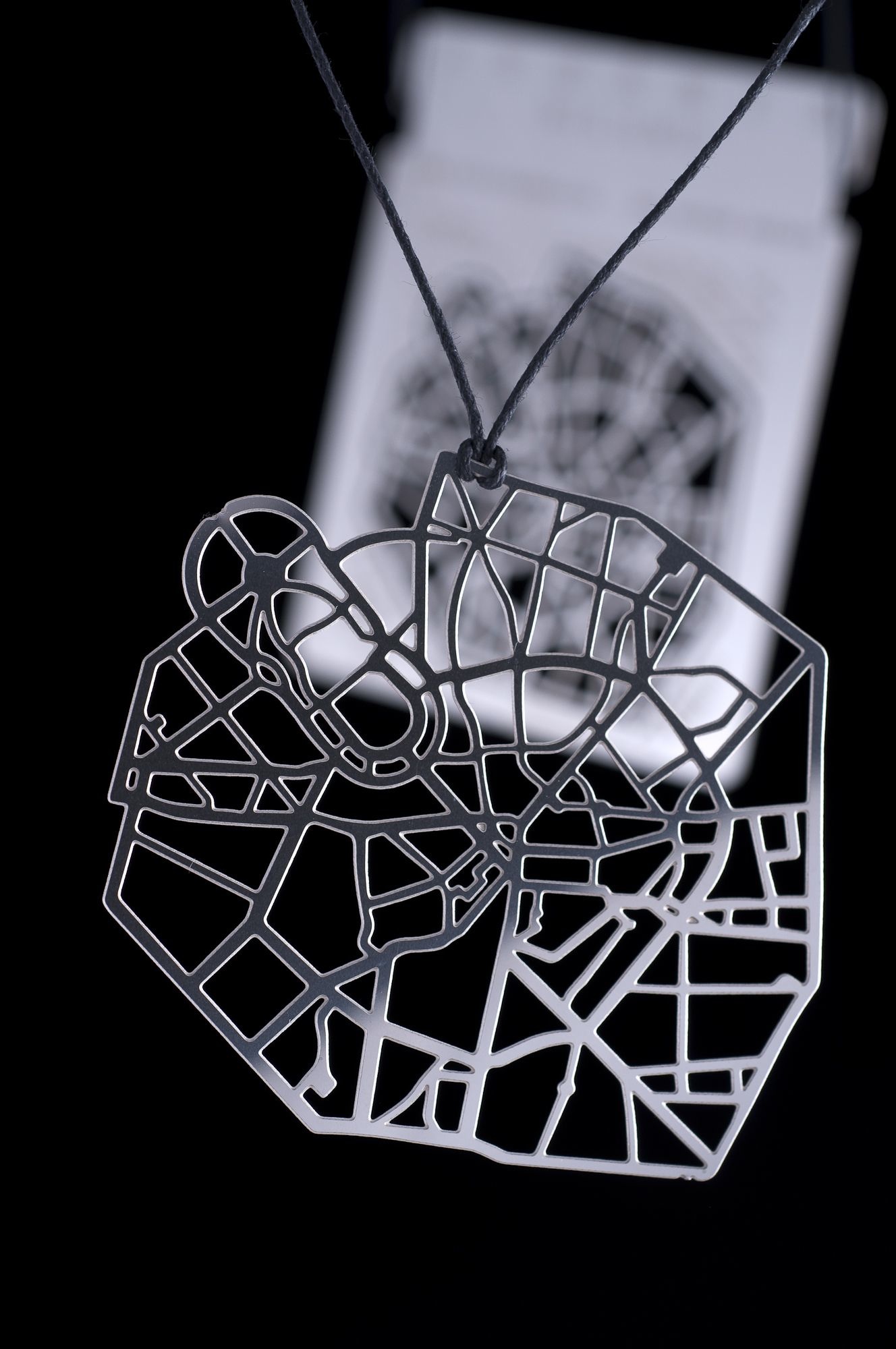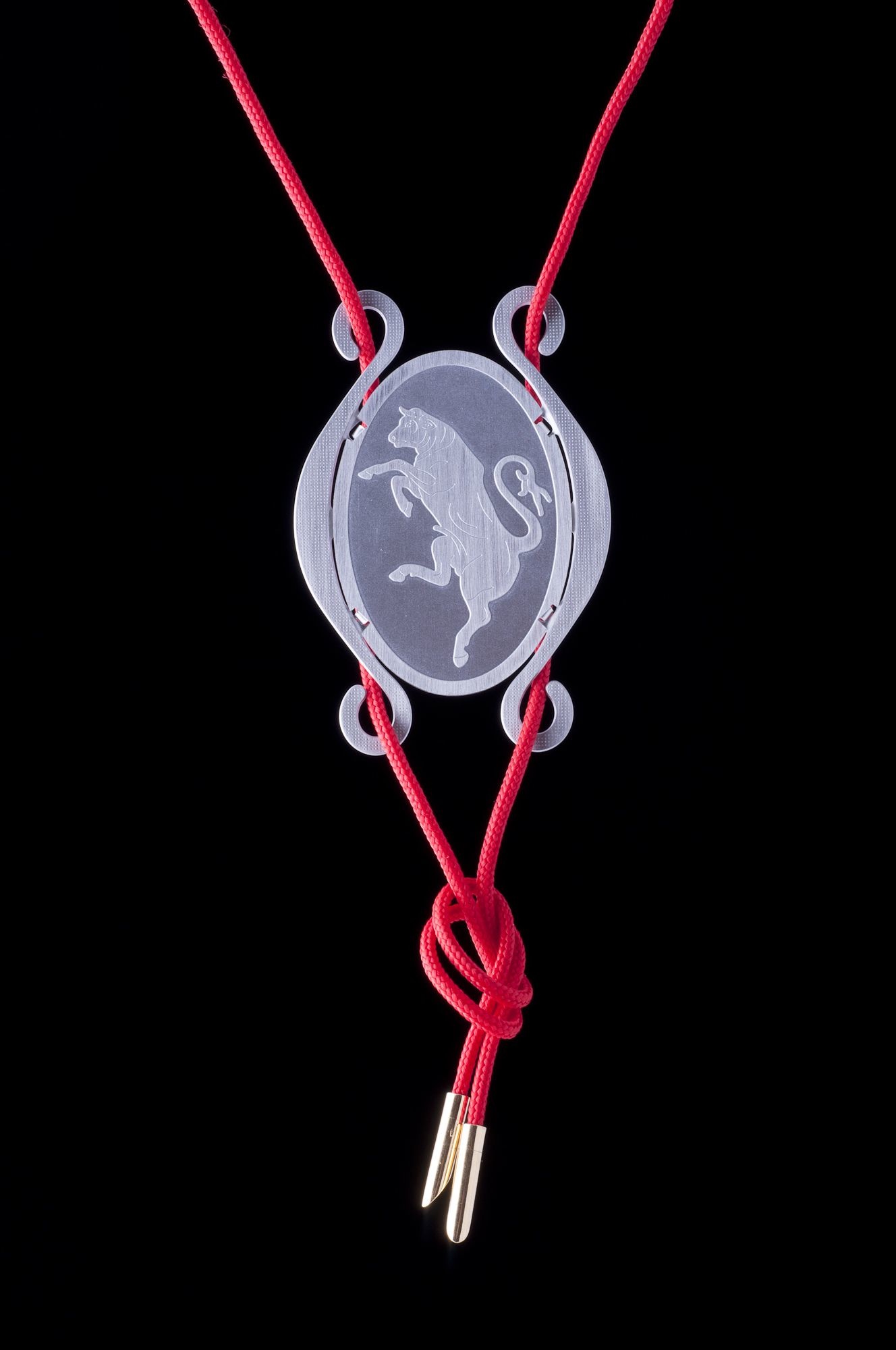 Tra i gioielli in mostra, quelli realizzati da Giancarlo Montebello e Gaspare Buzzatti per Rossociliegia. Il primo è l’autore di un pezzo ispirato al toro della Galleria Vittorio Emanuele, una celebre immagine beneaugurante che diventa un amuleto contemporaneo in acciaio semi-inciso e lavorato nel dettaglio. Il secondo ha creato una versione in miniatura della pianta del centro di Milano, trasformata in elegante pendente caratterizzato dalla grande precisione nell’intaglio su acciaio.