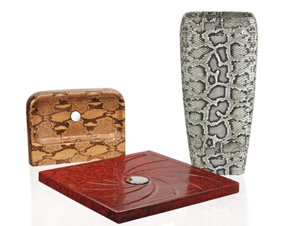 La nuova collezione Jungle firmata Ceramica Cielo è una vera provocazione. Un arredo bagno inconsueto che fonde il pellame di pitone e coccodrillo con l’alto artigianato della ceramica. Mai visto qualcosa del genere.