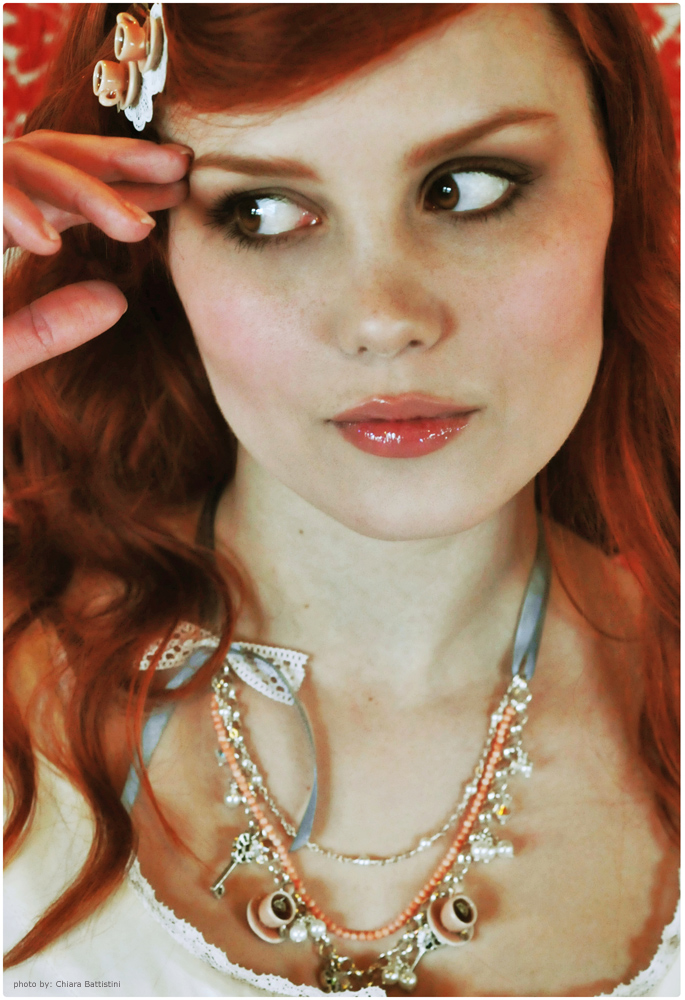 Le creazioni che ne fanno parte sono ben illustrate nel catalogo ed indossate da Vanessa Favilla; dietro l’obiettivo, Chiara Battistini: c’è il bracciale regolabile in filigrana e quello in pizzo, il ciondolo, il cerchietto ed i fermagli per capelli, la spilla, l’anello e la collana.