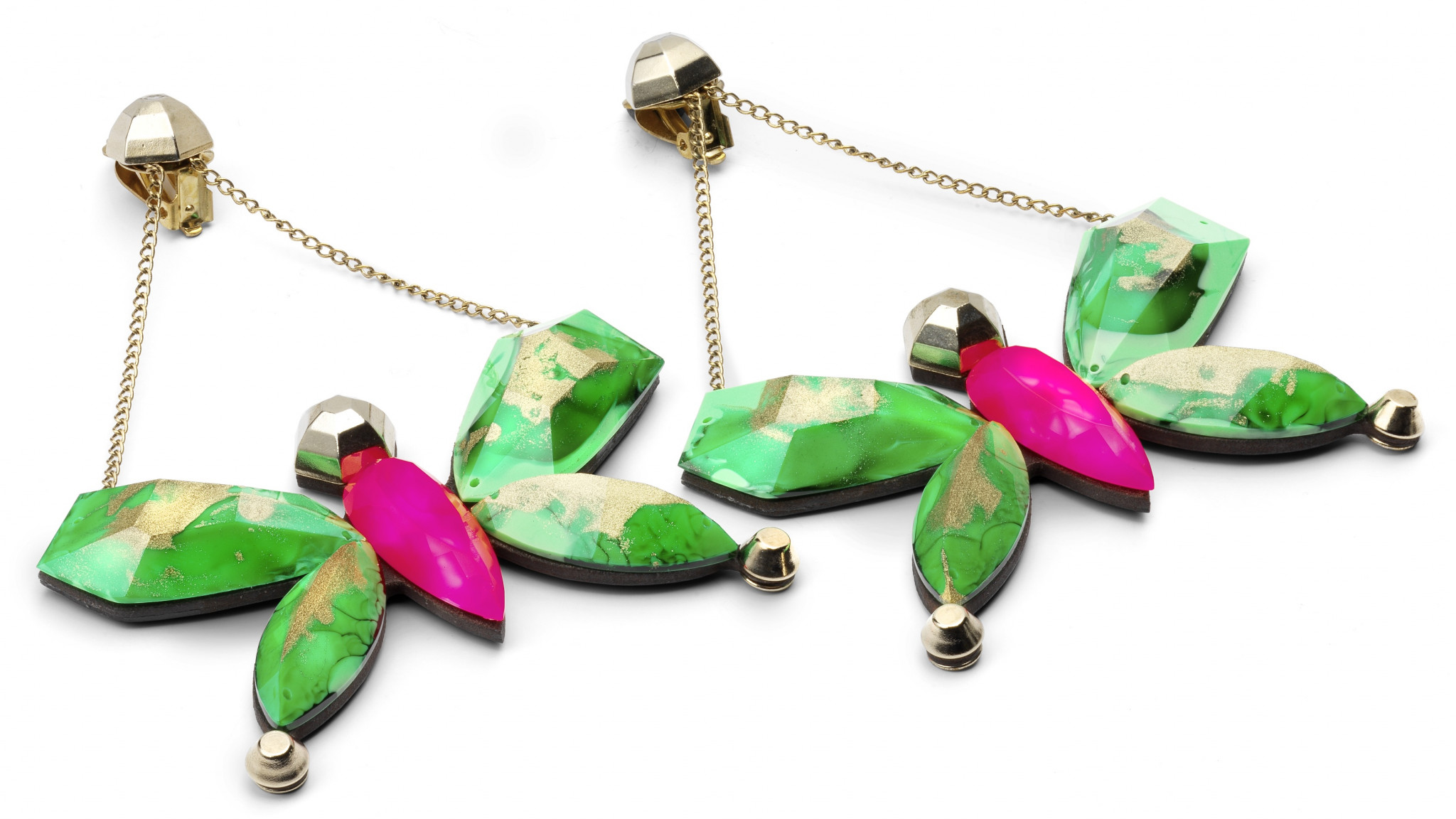 Colori brillanti, effetti fluo e mix cromatici ci portano verso una primavera davvero originale e preziosa in ogni dettaglio. I pregiati bijoux sono realizzati a mano e presentano inserti di resine colorate che, una volta cristallizzate, presentano venature cromatiche diverse, rendendo ogni pezzo unico.