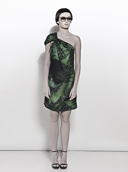 I tessuti sono soffici e leggeri come la seta e il raso, in alternanza ad altri più importanti, per un gioco di alternanza e bilanciamenti. Le stampe rimandano al sottobosco, mentre tagli e simmetrie si ispirano agli anni Venti e Cinquanta.