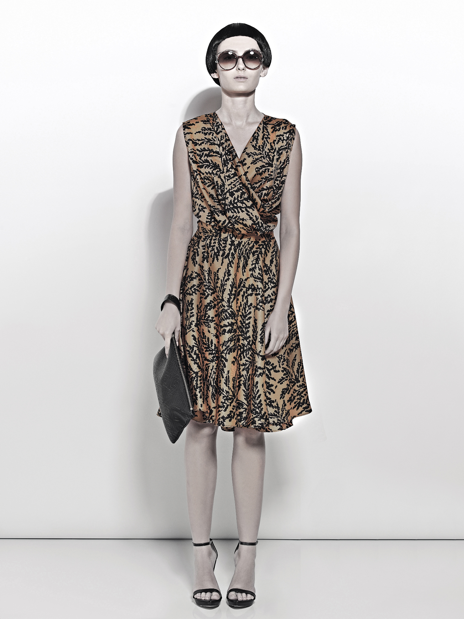 Long dress, pantaloni fantasia, mini-abiti, tute, bluse e top. La palette vede l’utilizzo di molto nero, in tinta unita o mixato in fantasia con i verdi, il petrolio, il bianco, l’arancio e i colori della terra.