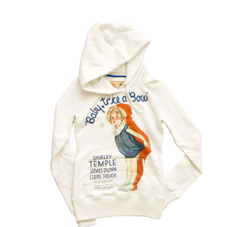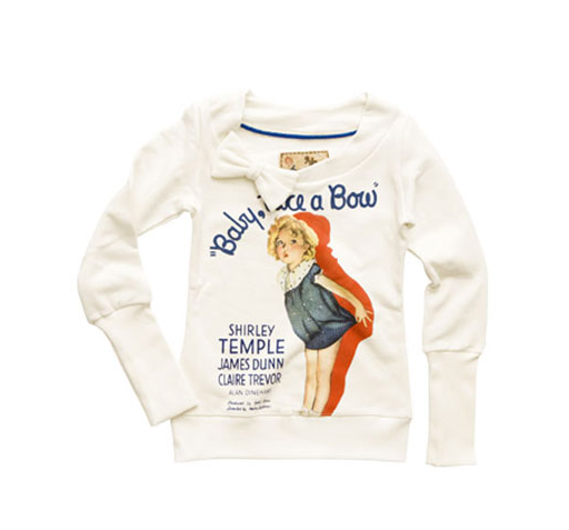 In particolare nella nuova collezione autunno-inverno 2009-2010 è stata scelta Shirley Temple per questa moda dedicata ai teenager, ma non solo; così la “riccioli d’oro” protagonista del cinema degli anni Trenta è diventata una moderna icona che compare su felpe con cappuccio, t-shirt a manica corta, polo, dolcevita e borsa, tutto declinato in bianco e profilato di blu.