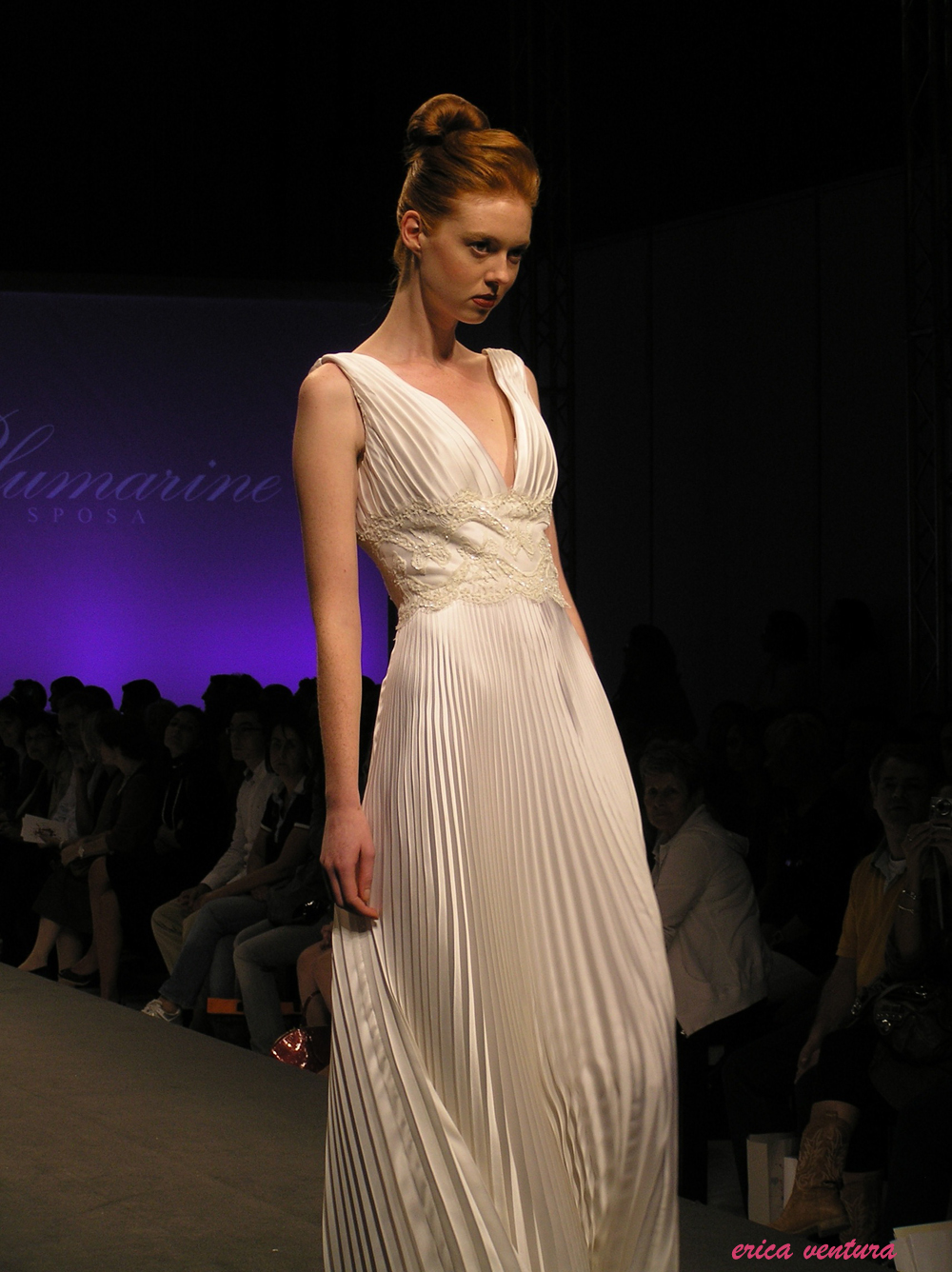Ore 18, la Londra di metà ‘900 scende in passerella. Blumarine è uno dei numerosi marchi che ha presentato la propria collezione di abiti alla fiera Io Sposa 2009 che si è chiusa nei giorni scorsi a Milano.